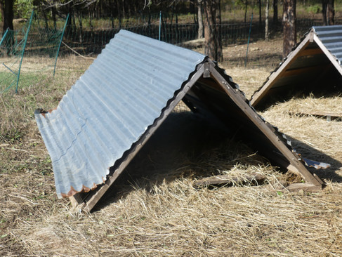 We also put both our old pig A frame shelters in the goat pens for more places for them to get out of the elements. We also screwed backs on the A frames to stop the wind. If you would like to learn more about these shelters, see our blog https://www.longcreekfarm.net/post/a-frame-shelters-for-pigs.