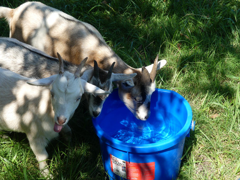 For example: when goat kids are playing, try waiting until they pause before head butting the other goat. Or when chickens are scratching, wait until their head goes up between scratches.