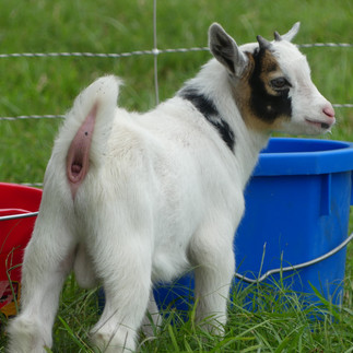 If your goats are anything like ours, the second you get down on your knees to take a picture the babies come running over and leap into your lap, the does run over and stick their heads over your shoulder or chew on your hair, and they are always too close for a picture, well a picture of their whole body, not just one ear.